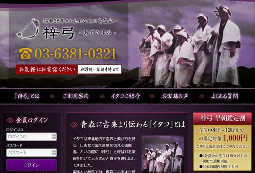 ● 電話占い梓弓(あずさゆみ)の元祖イタコパワーは本格的なスピード鑑定で人気!